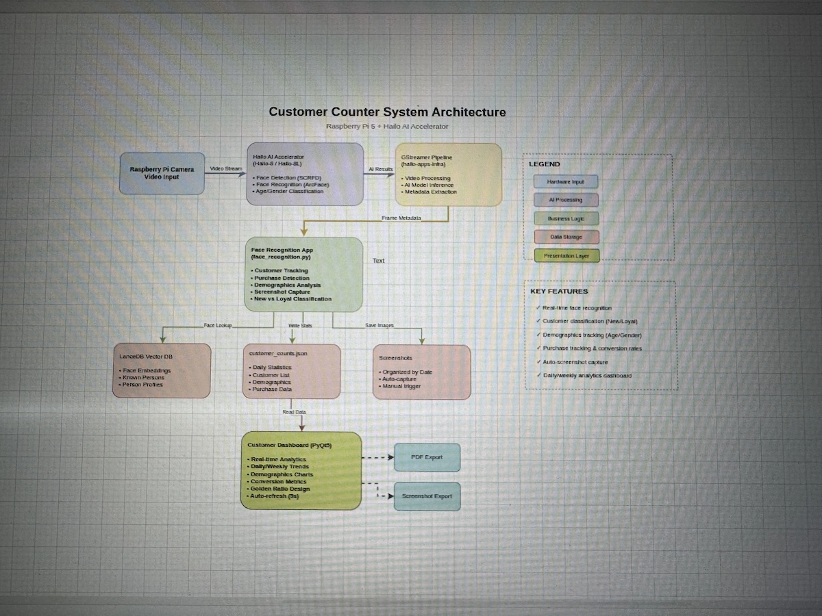 Prototyped using Raspberry Pi with AI HAT to identify edge computing capabilities and performance constraints. Evaluated AI chips and computing performance metrics (TOPS - Tera Operations Per Second) to balance computational power with cost and power consumption for retail deployment.